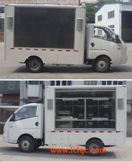 該車是用于廣告宣傳和科普宣傳專用車輛。車輛右側(cè)選裝LED屏,左側(cè)選裝滾軸裝置。側(cè)防護和后防護與車輛結構為一體。車輛后部下邊緣離地高度 | ||