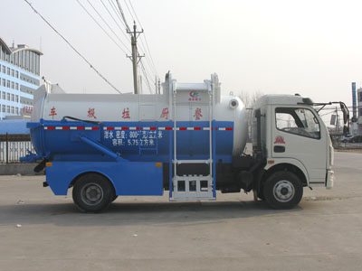 將桶裝餐廚垃圾(泔水)經該車輸送帶緩緩上輸,在車頂部倒入車廂內(車箱可分為箱體和罐體),被投放的垃圾經過強有力的推板擠壓,在罐體內實現固液分離,固體垃圾被壓縮儲存在罐體,體積變小,如此反復待裝滿后送至餐廚垃圾資源優化處理廠。整個過程實現自動化,減少人力,操作簡單。 餐廚垃圾車 特點