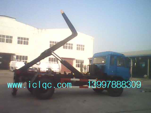 程力專用汽車箱體可卸式垃圾車又稱拉臂式垃圾車(以下簡稱垃圾車)是用于城鎮袋裝、散裝生活垃圾物的收集運輸、卸料作業的專用車輛。 該車是由汽車底盤、伸縮拉臂、主臂油缸、活動套臂、套臂油缸、附車架、翻轉架、支撐腿、鎖緊架、鎖緊油缸及多路換向閥等組成。翻轉架一端連在附車架上,其另一端設有活動套臂,中間安裝有橫向和縱向鎖緊系統;主臂油缸一端連在活動套臂上,另一端連接在附車架上;橫向鎖緊機構通過鎖緊油缸的動作可以將垃圾箱體與翻轉架上連為一體,再通過伸縮油缸的伸出使活動套臂與翻轉架連為一體,最后在主油缸伸出時形成自卸角,從而產生自卸;鉤箱和放箱是橫向鎖緊處于伸出松開狀態,而套臂油缸處于收回狀態,伸縮拉臂回到活動套臂中,縱向鎖緊機構脫開,工作拉臂處于最短時進行鉤箱與放箱。 該車可將地下垃圾箱內的垃圾及垃圾箱一同拉至車上運走同時可自卸,且垃圾箱體采用液壓鎖緊或開啟,降低了工人的勞動強度和改善了工作環境。