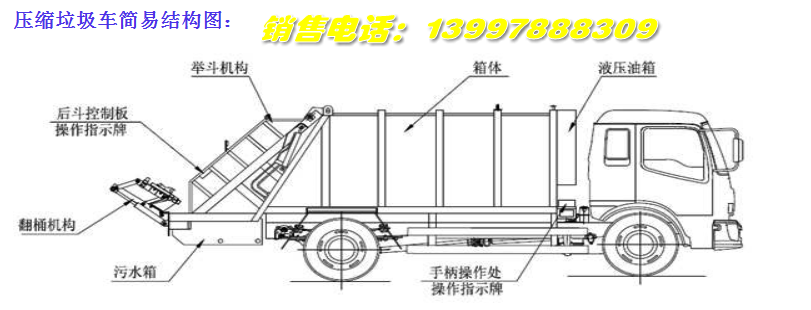 卸垃圾:則將垃圾斗體通過液壓裝置舉起,使用推鏟將垃圾推出,完成垃圾卸料。