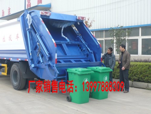 壓縮垃圾車多中翻桶(斗)機構不同用戶可根據不同的垃圾搜集方式,先裝不同的翻桶(斗)機構,翻標準垃圾鐵桶ZBT59003-88(300升)塑料垃圾桶(240升)隨車小垃圾斗(800升)密封遮蓋式垃圾斗(1400升)、大垃圾斗(3350升)
