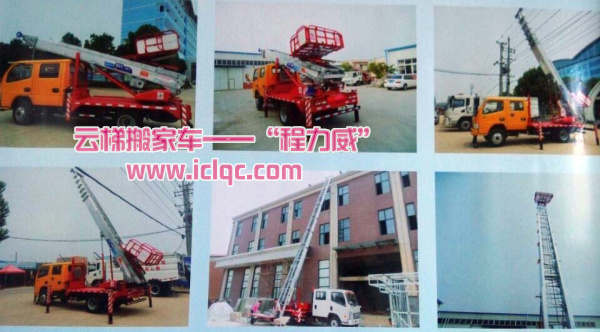 “程力威”牌云梯搬家車作業高度28米,云梯從韓國進口,底盤有東風雙排座和江鈴雙排座兩種可供選擇。