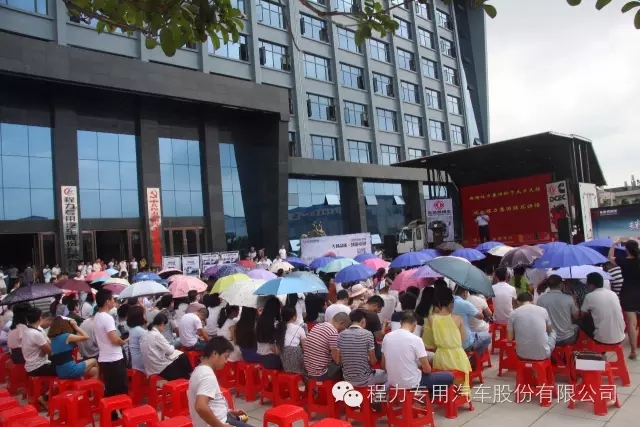 由湖北圣地車都公司、東風康明斯發動機有限公司、東風商用車公司和東風專用汽車有限公司聯合舉辦的“東風專用汽車底盤國五產品推介會”,在程力專用汽車股份有限公司八號樓前召開,東風康明斯發動機有限公司卡車事業部總經理胡道金先生,東風商用車公司東風專用汽車底盤公司副總經理蔡倫新先生,東風隨州專用汽車有限公司副總經理邱宇先生,程力集團有限公司總經理程阿羅先生等主要領導出席本次會議。