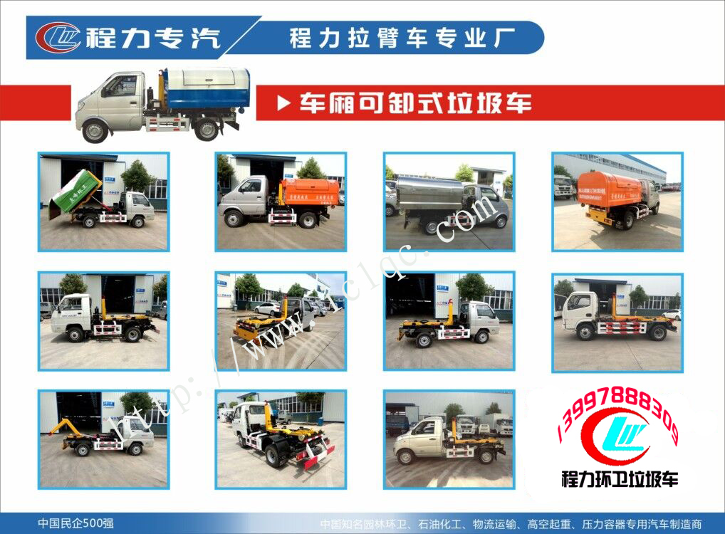 鉤臂垃圾車又稱車廂自卸式垃圾車,它可以一車多配箱體,節省開支,節能環保,垃圾車哪里有賣?來程力買垃圾運輸車有哪些好處?買車鉤臂垃圾車到程力來找戈總電話:13997888309