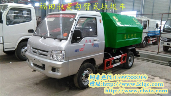 一、福田馭菱勾臂式垃圾車,整車型號為CLW5030ZXXB5,底盤型號BJ1030V4JV2-S1,總質量2675kg,整備質量1245kg,額定質量1300kg,2370mm軸距,五菱62馬力的國五汽油發動機,可以配置3-4立方的垃圾箱,垃圾箱的樣式可以根據客戶的喜好來定制。