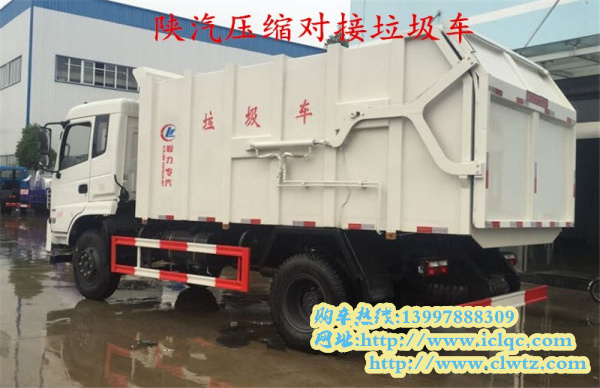 二、陜汽軒德對接式壓縮垃圾車,整車型號為CLW5160ZDJS5,底盤型號SX1168GP5,總質量15.8噸,額定質量7.1噸,整備質量8.5噸,4600mm軸距,玉柴160馬力國五柴油發動機,外形尺寸為7920*2500*3300mm,箱體容積在8立方左右。該款對接式壓縮垃圾車全自動操作,其壓縮密度可達0.8T/m3。