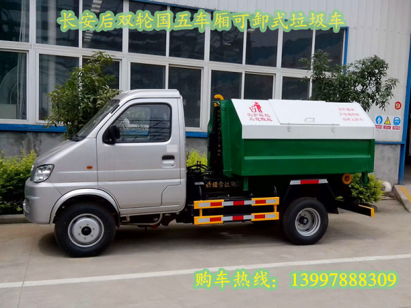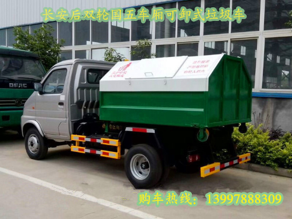 長安后雙輪國五車廂可卸式垃圾車(長安后雙輪國五勾臂式垃圾車)