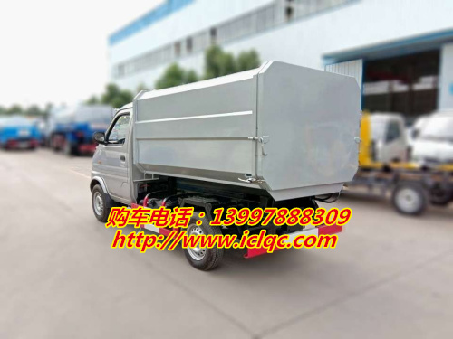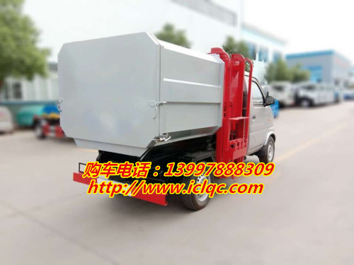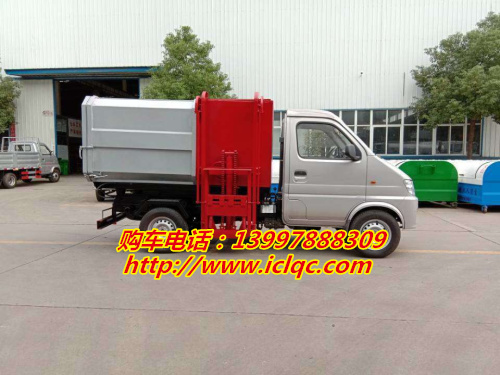 小型汽油版側面掛桶提升垃圾車底盤配置:重慶小康88馬力 方向助力 5檔變速箱 前盤后鼓剎車 175R14LT 8PR 真空胎 原裝空調 取力器,汽油,2700軸距。