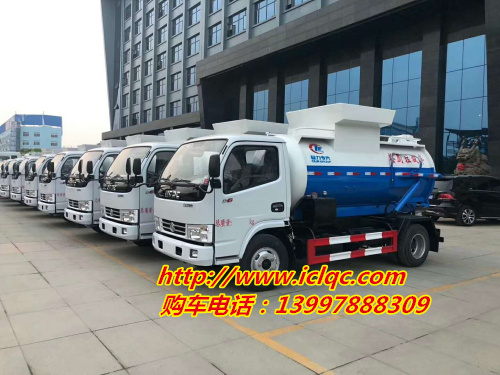 新款東風5方餐廚垃圾車:上裝由箱體、后門機構、密封鎖緊機構、推板機構、掛桶機構及操作機構組成。底盤配置: 5方東風餐廚垃圾車采用朝柴102馬力/全柴115馬力發動機,1730單排駕駛室,7.00R16鋼絲胎,氣剎、ABS、五檔變速箱,成排的餐廚垃圾車整裝待發。